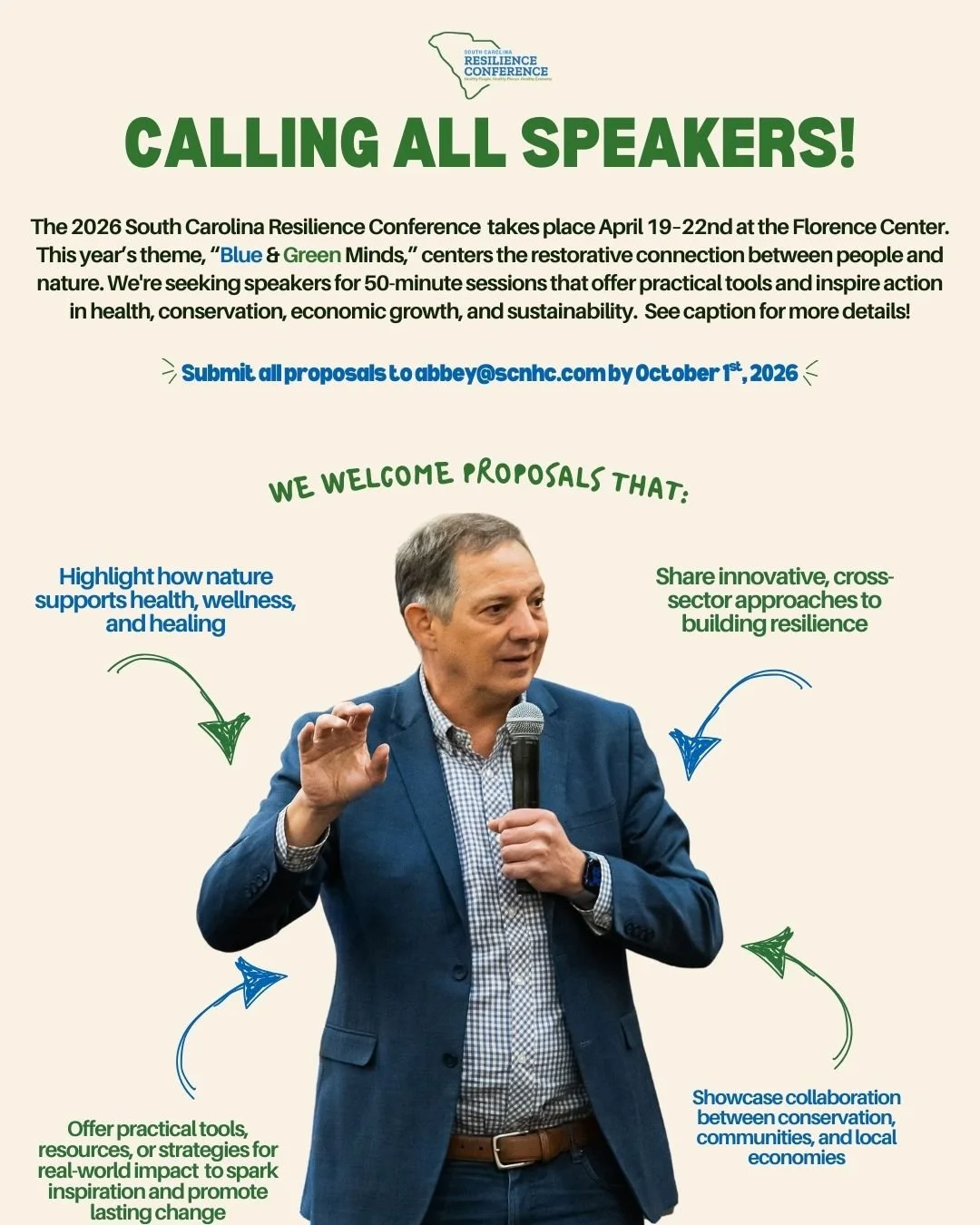 This unique conference unites the dynamic sectors of health and wellness, conservation, and community and economic sustainability. This gathering, unlike any other in the nation, assembles leaders, innovators, and advocates from diverse fields under one roof to delve into pressing issues, share insights, and forge collaborative pathways toward a healthier, more sustainable future. Together, we have the power to inspire change, catalyze action, and chart a course towards a more resilient South Carolina, Southeast Region, and USA for generations to come.